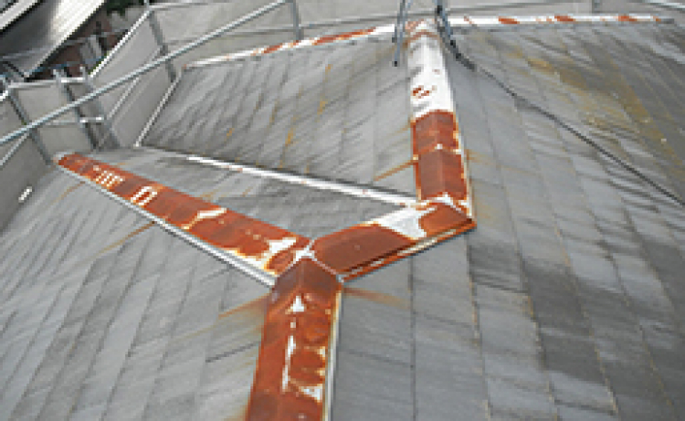 屋根は現状の色が気に入っていらっしゃったので、錆びている部分をケレンして錆止めを塗り、現状とほぼ同じ色で塗装しました。