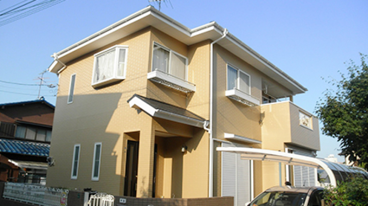 その後、暖色系の外壁色を選ぶために色見本で色系統を検討していましたが、小さな見本ではイメージがつかみにくいと思い、実際に塗装した物件をお客様と見に行きました!外壁は明るい色になり、明るく「ただいま!」と言えるような仕上がりになりました。