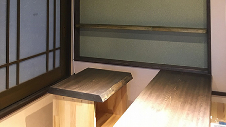 2階バルコニーに小料理屋のお店を創りたいとのことで、「吹抜け部分をキッチンにしてそこから料理を運ぶ」というのがお客様の当初のご希望でした。